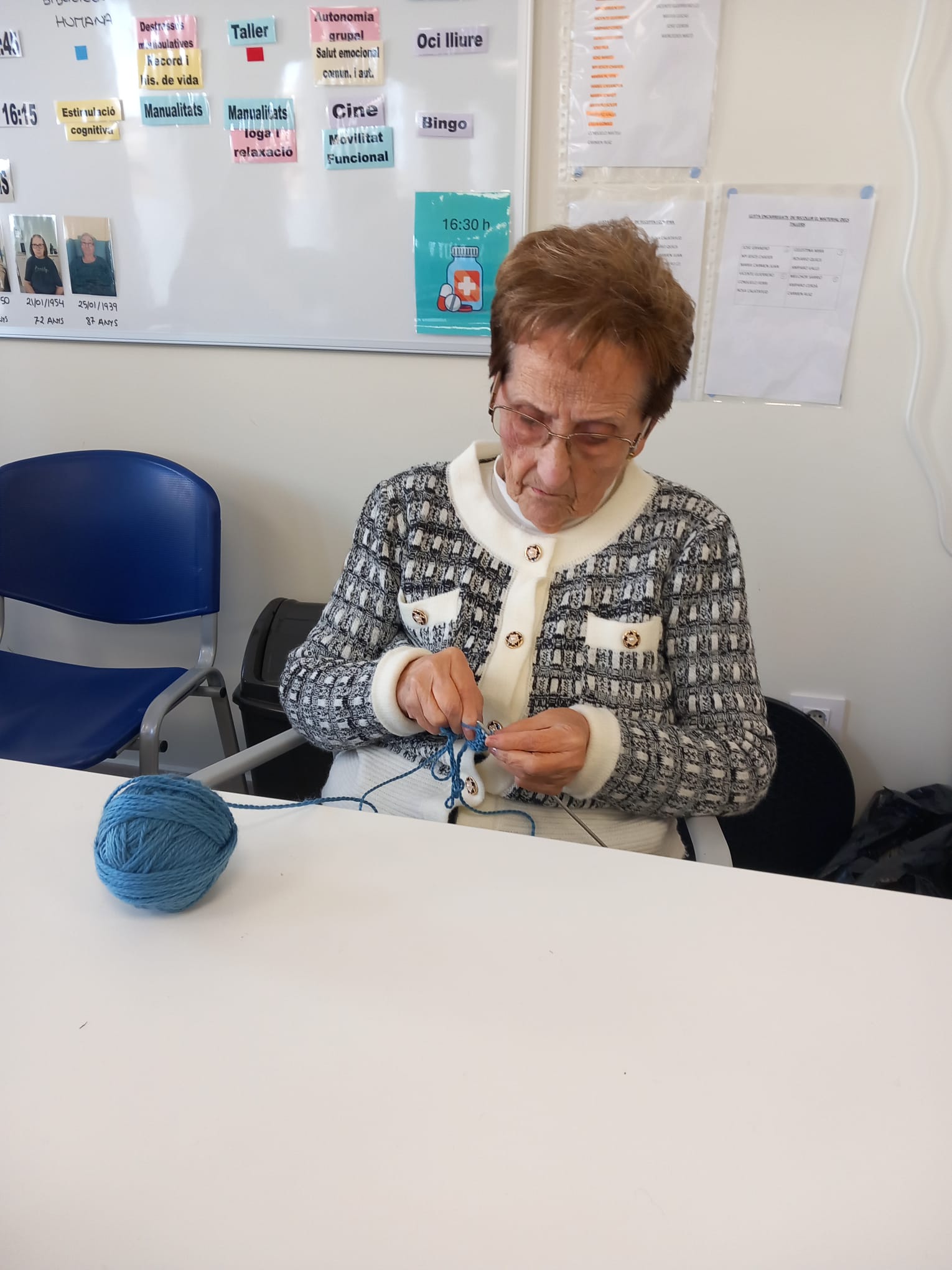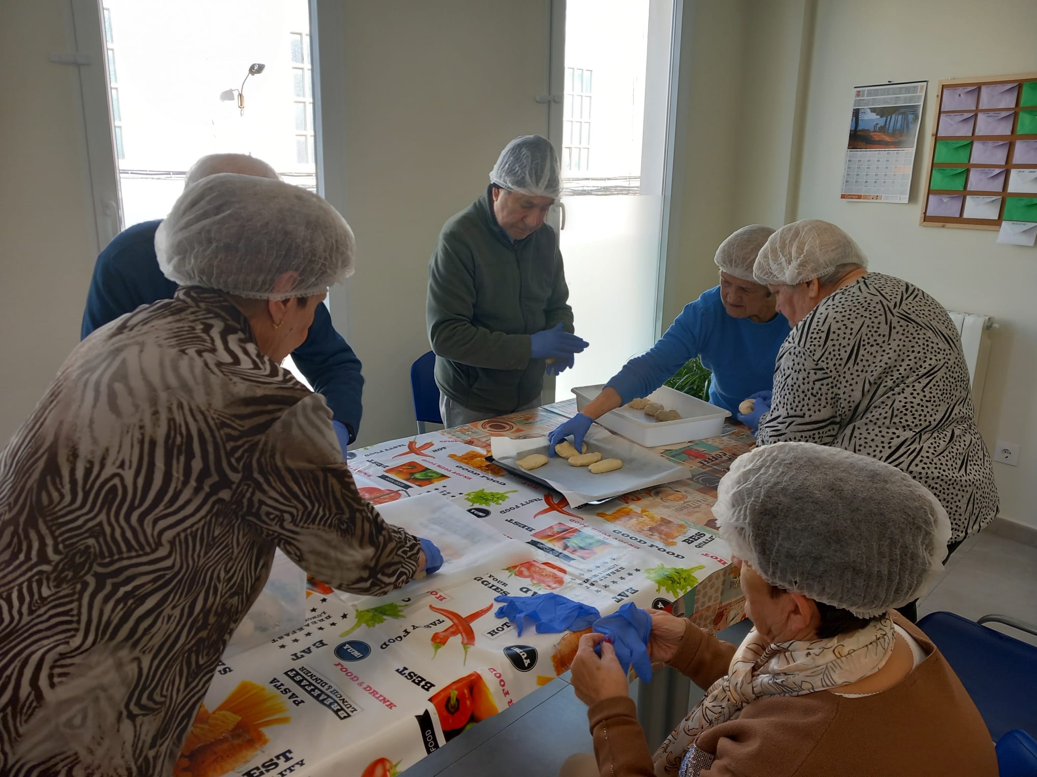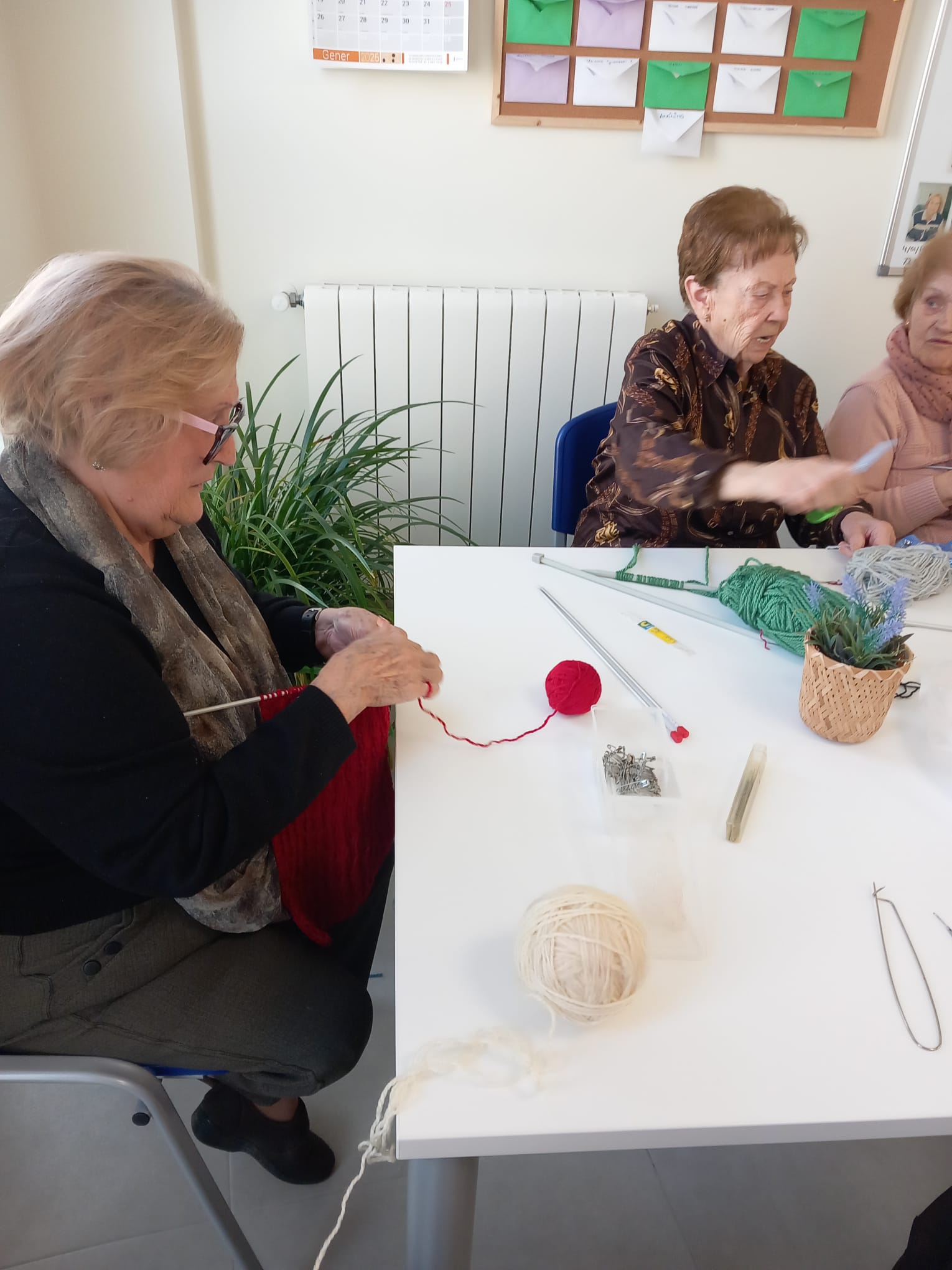 Las personas mayores confeccionan con ilusión cuellos y gorros desarrollando habilidades manuales y disfrutando de un espacio de convivencia y creatividad