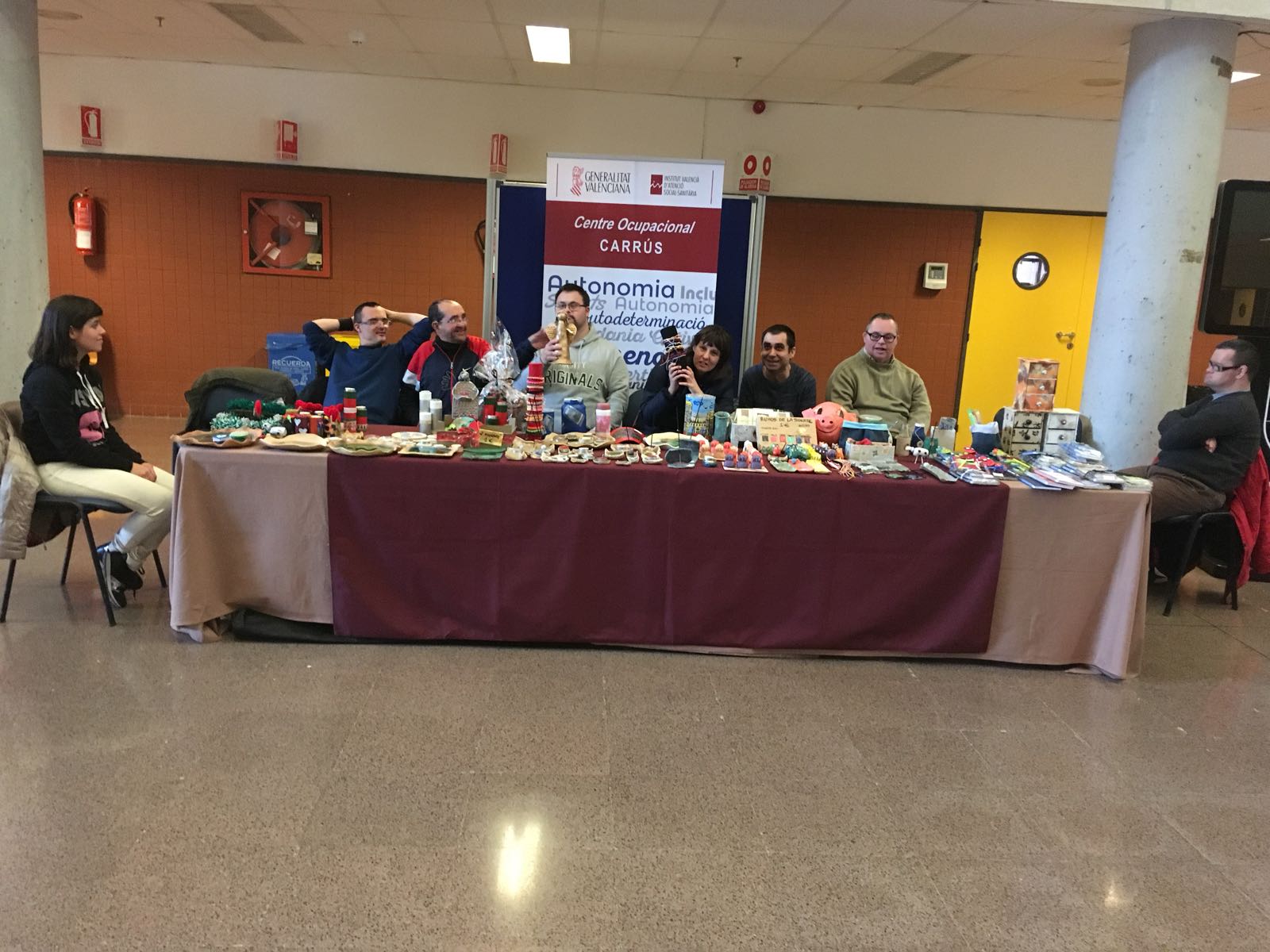 El Centro Ocupacional Carrús del Instituto Valenciano de Atención Social-Sanitaria (IVASS) en Elche ha instalado un stand de exposición y venta de productos elaborados en sus talleres ocupacionales en el hall de uno de los edificios de la Universidad Miguel Hernández.